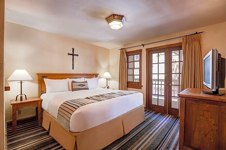 Featuring a spacious shared balcony, this studio features authentic weavings and crosses made by Chimayo artists.
